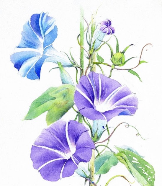 Yoko Harusaki 水彩画 シンプルに描く朝顔の描き方 Morning Glory 3色で描く水彩画 Painting With Three Colors Youtube